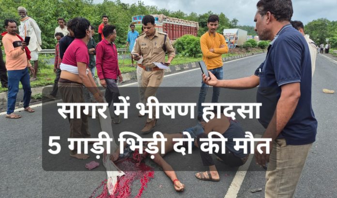 सागर में भीषण हादसा; 5 वाहन आपस में टकराए, दो की मौत कई घायल