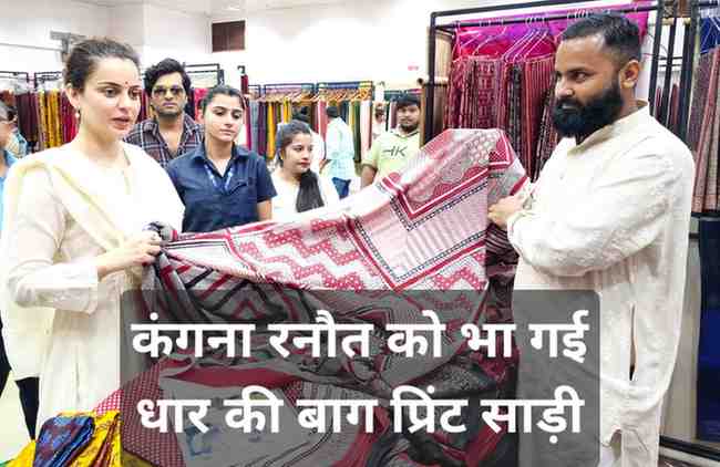 कंगना रनौत को भा गई धार की बाग प्रिंट साड़ी, साड़ीज़ ऑफ़ इंडिया में लगी प्रदर्शनी में कहीं यह बात